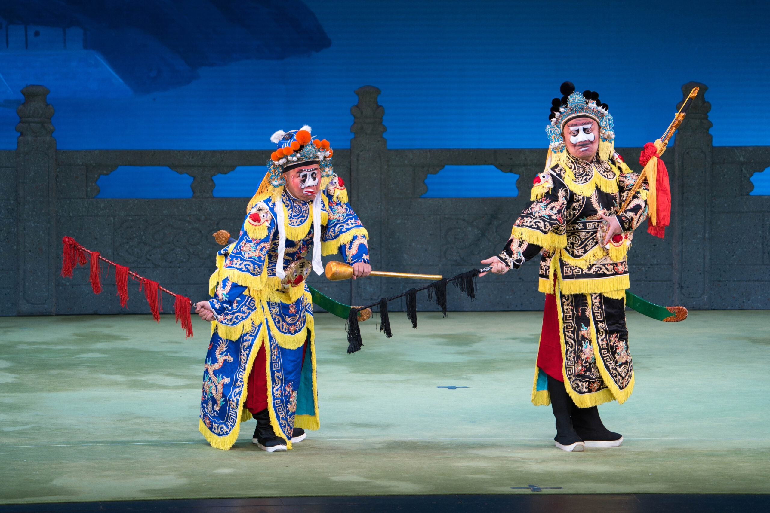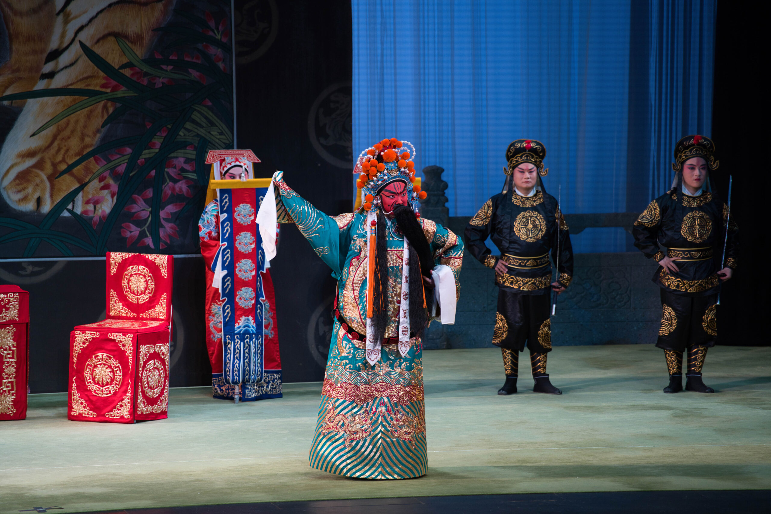 秦腔傳統經典劇目《回荊州》又名《龍鳳呈祥》,以三國亂世中弄假成真的婚姻詐騙為布局,巧妙交織政治謀略與愛慕元素,劇情緊湊而幽默。劇中生、旦、淨、丑四路行當俱全、唱唸做打並重,是秦腔藝術中角色行當最齊全的劇目,結合梆子腔的鏗鏘韻律,立體展示秦腔的全貌。多位梅花獎得主將同場爭奇鬥艷,秦腔「四大名旦」之一的齊愛雲完美演繹孫尚香外剛內柔的獨立女性形象,於〈別母〉中淚別由屈巧哲飾演的母親吳國太,二人運腔行雲流水哀婉動人,道盡了面對骨肉分離與大義之間的複雜取捨,極具感染力;而「妙計安天下」的周瑜則由秦腔當紅小生張濤出演,〈周瑜坐帳〉中的精彩唱段以及精湛武藝將為焦點。